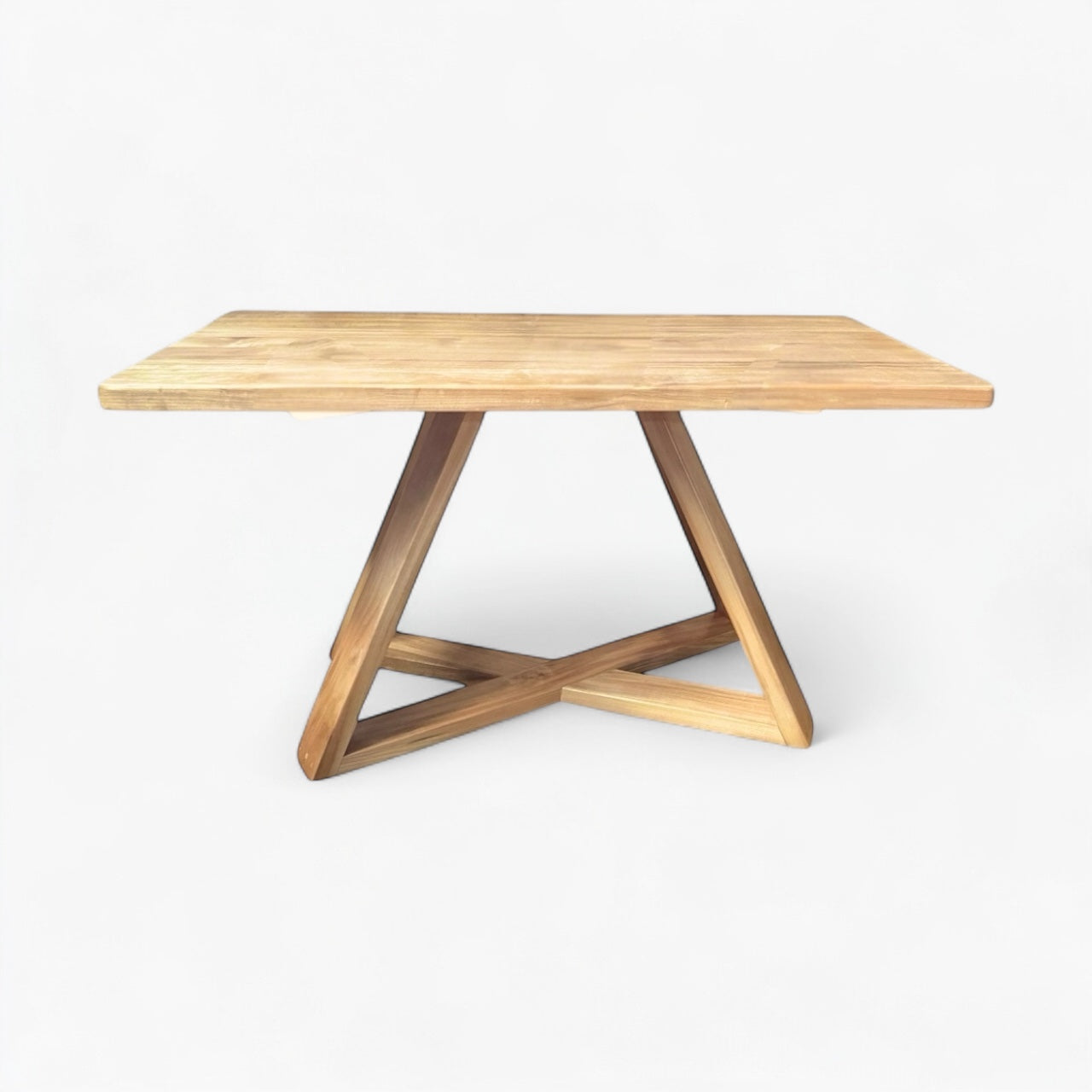 La Mesa Lago Maihue está fabricada completamente en madera noble maciza, desde su cubierta hasta su base entrelazada, que funciona como elemento estructural y escultural a la vez. Ideal para espacios que buscan calidez natural, nobleza visual y una estética limpia sin elementos metálicos.
