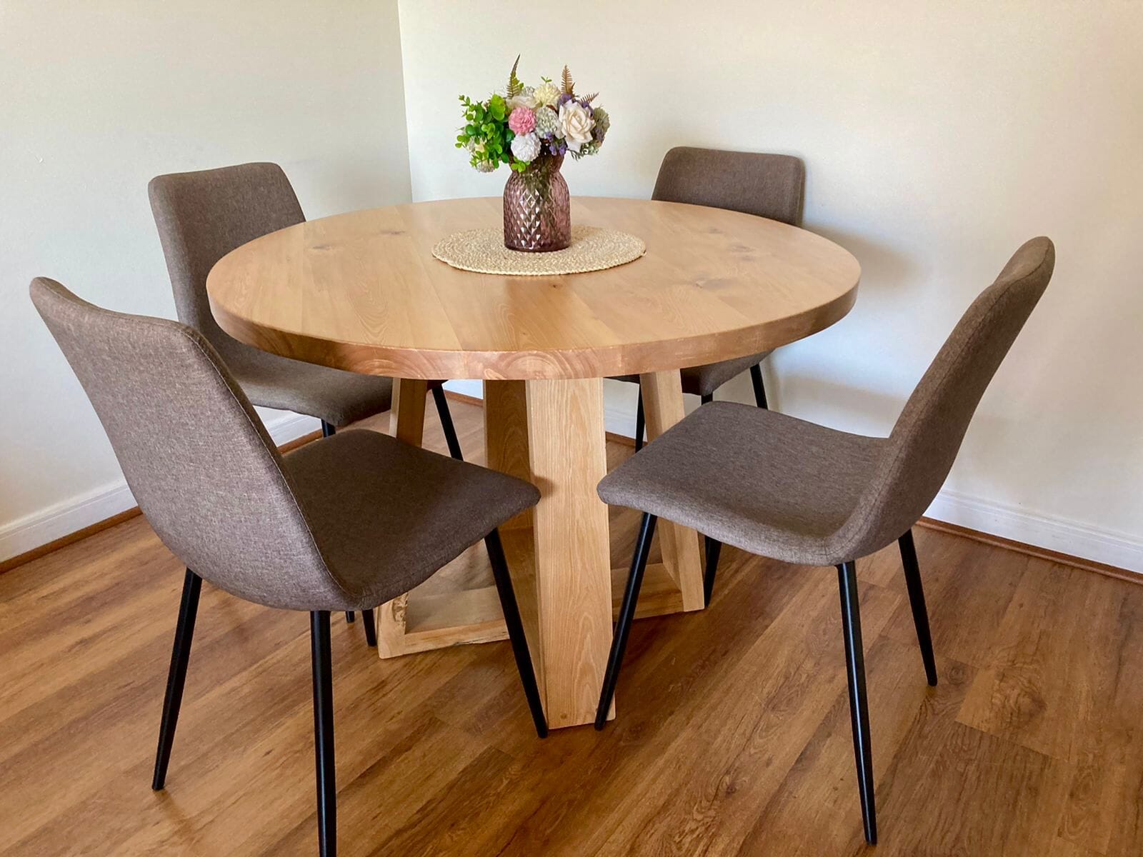 La Mesa Río Puelo es redonda, noble y acogedora. Su forma circular invita a la cercanía. Fabricada completamente en madera maciza de alta calidad. Ideal para comedores y espacios familiares. Está disponible en maderas como Raulí, Lenga, Coihue, Castaño o Mañío, y en distintos diámetros para adaptarse a tu espacio.